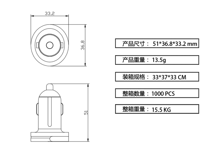 产品类别:5V1A车载充电器