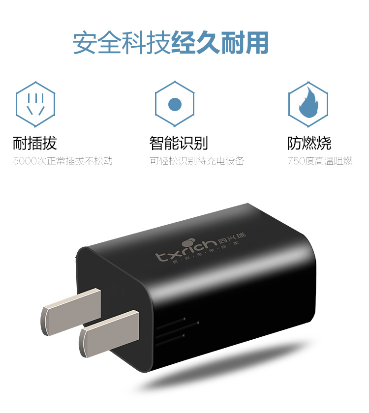足2.4A手机充电器同兴瑞批发 3C认证中规TX-0502400-AC001