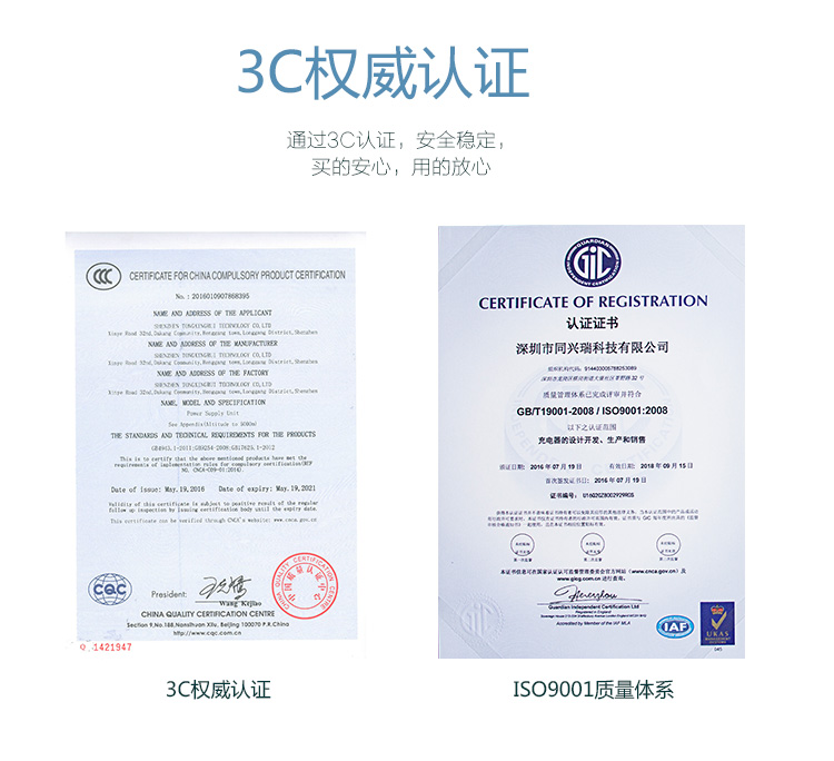 ISO,3C,CE,FCC国际认证,安全可靠!
